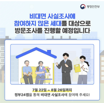 만약 비대면 참여 기간을 놓치셨거나, 중점 조사 대상에 해당하는 경우, 8월 27일부터 10월 15일까지 진행되는 방문 조사에 참여하시면 됩니다.